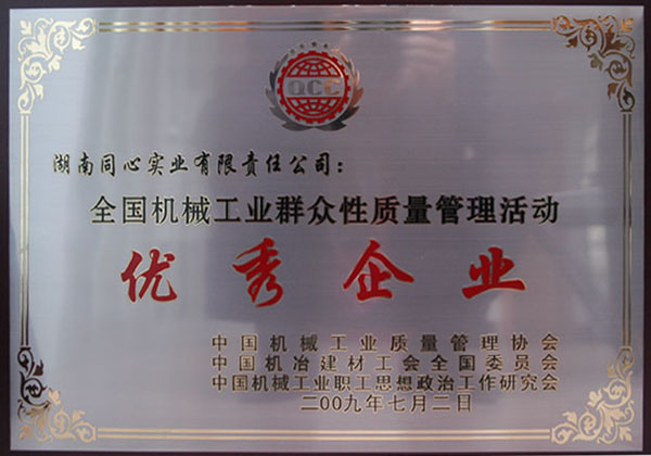 全國機械質(zhì)量管理活動榮獲“優(yōu)秀企業(yè)”稱號